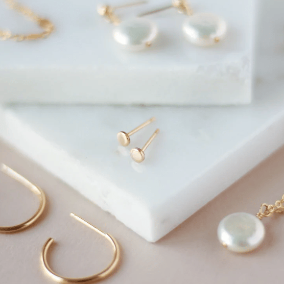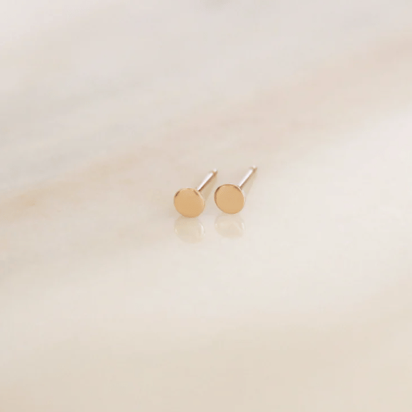 Minimalist Tiny Dot Studs—Dainty Circle Earrings in Gold, Rose Gold, or Silver, Available in Solid 14k Gold or Gold-Filled.