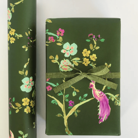 Olive Peacock Chinoiserie Wrapping Paper